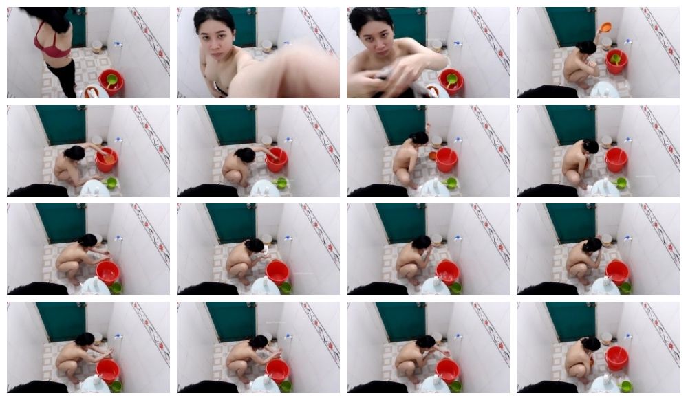 偷录合租妹子用小盆子洗海鲜,妹子好几次疑惑的看镜头,没起疑心